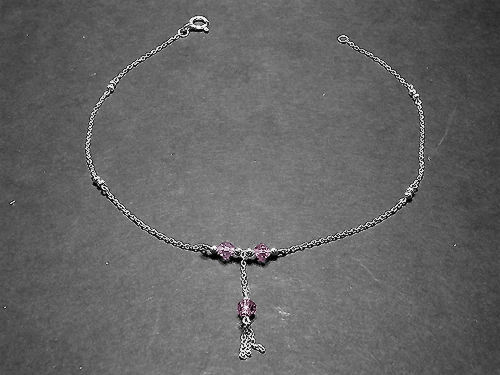 925er Silberfußkette mit Kunststoffperlen (rosa)